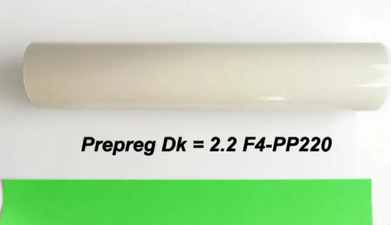This is a pre g used in high-frequency multi-layer PCB, with DK=2.25 DF=0.0015 for F4-PP220 at a frequency of 10GHz.