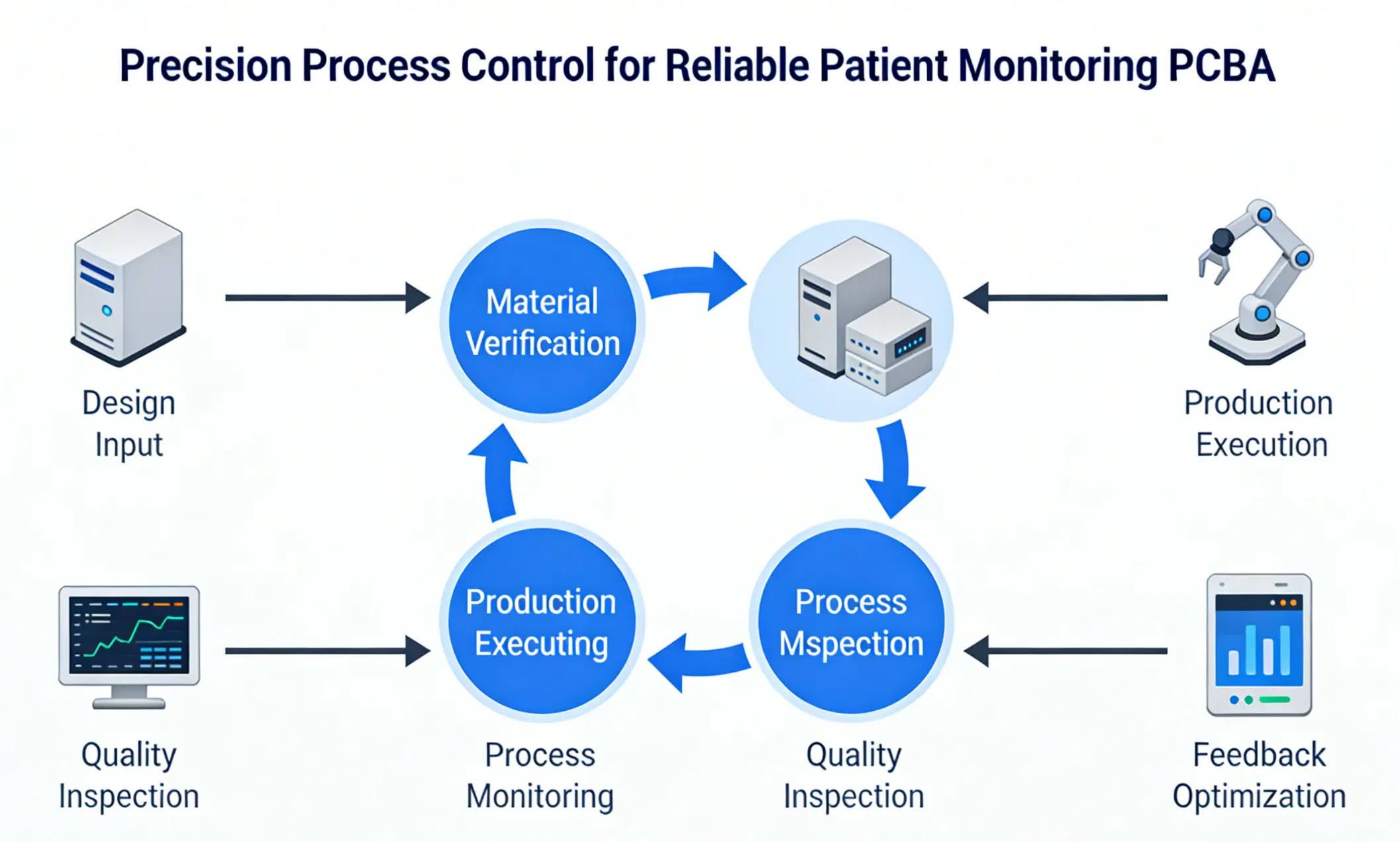 Consistent process control is essential to meet the zero-defect requirement of Patient Monitoring System PCBA. PCBMO implements a closed-loop manufacturing system with rigorous parameter monitoring across every production stage, adhering to the ≤30ppm defect rate standard specified by ISO 13485—far stricter than the 200ppm industry average for general electronics .